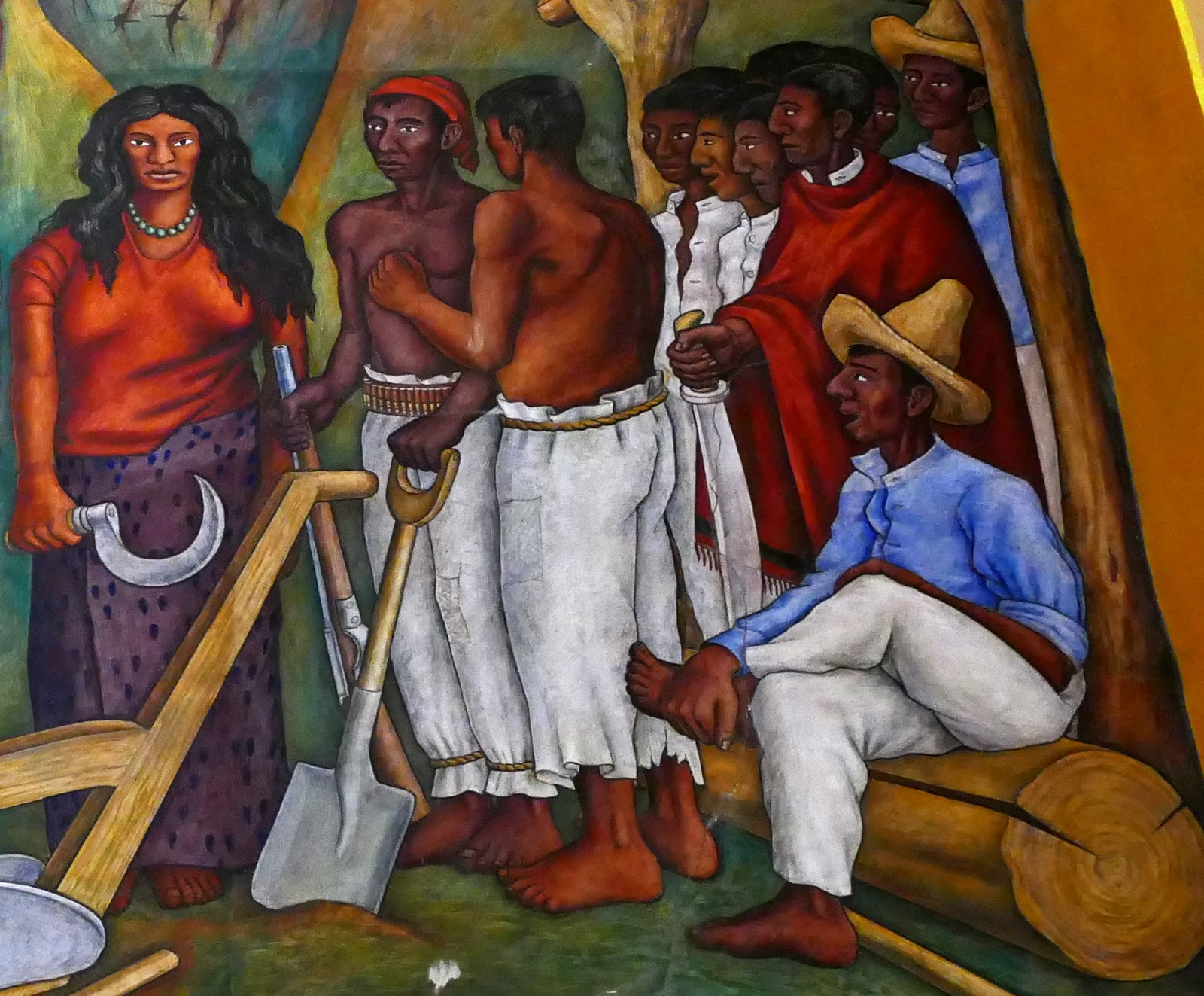 Detail: A woman grasps a sickle symbolizing the Mexican revolution